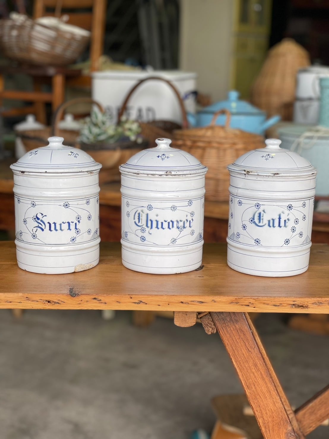 cafe ホーローキャニスター サキソニー柄キャニスター フランスブロカント