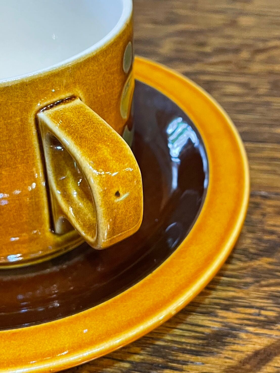 ソーサーにはスレなどによるキズが見られますが濃色のブロンテではどうしても目立ってしまうようです。