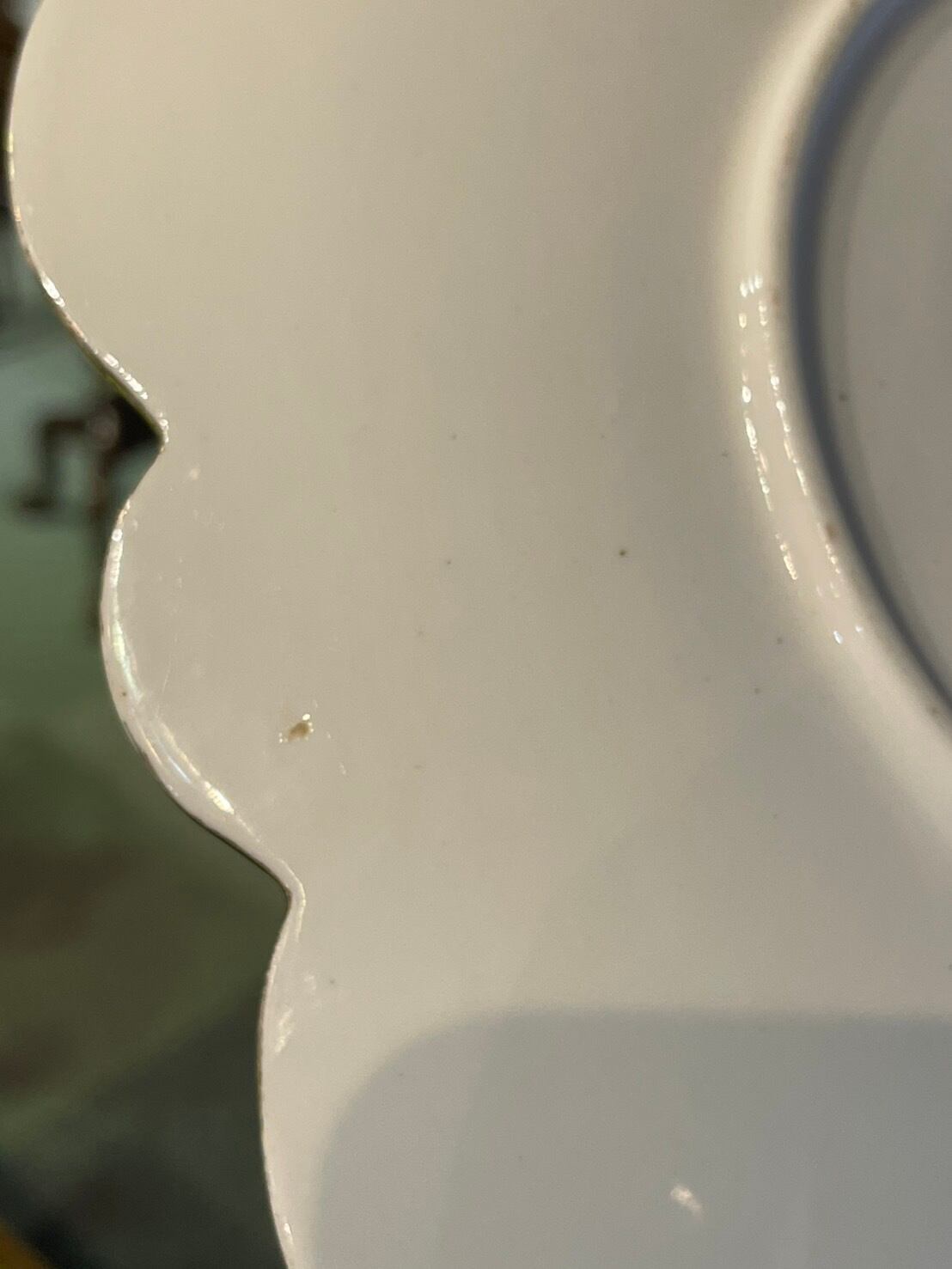 古いものですので金彩の擦れや使用感がみられます。ひびや欠けなどはなくこの年代のものとしては、とてもきれいな状態です。製造時にできた鉱物の斑点(ビクトリア朝時代によく発生していたもの)が見られます。
