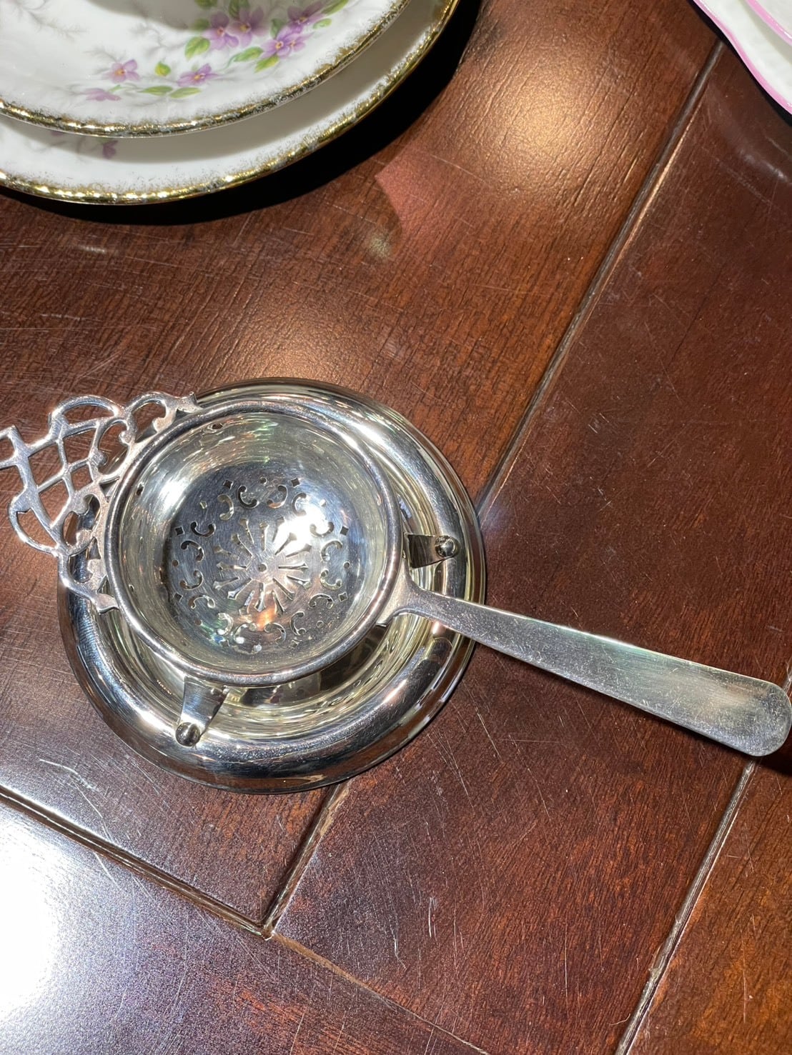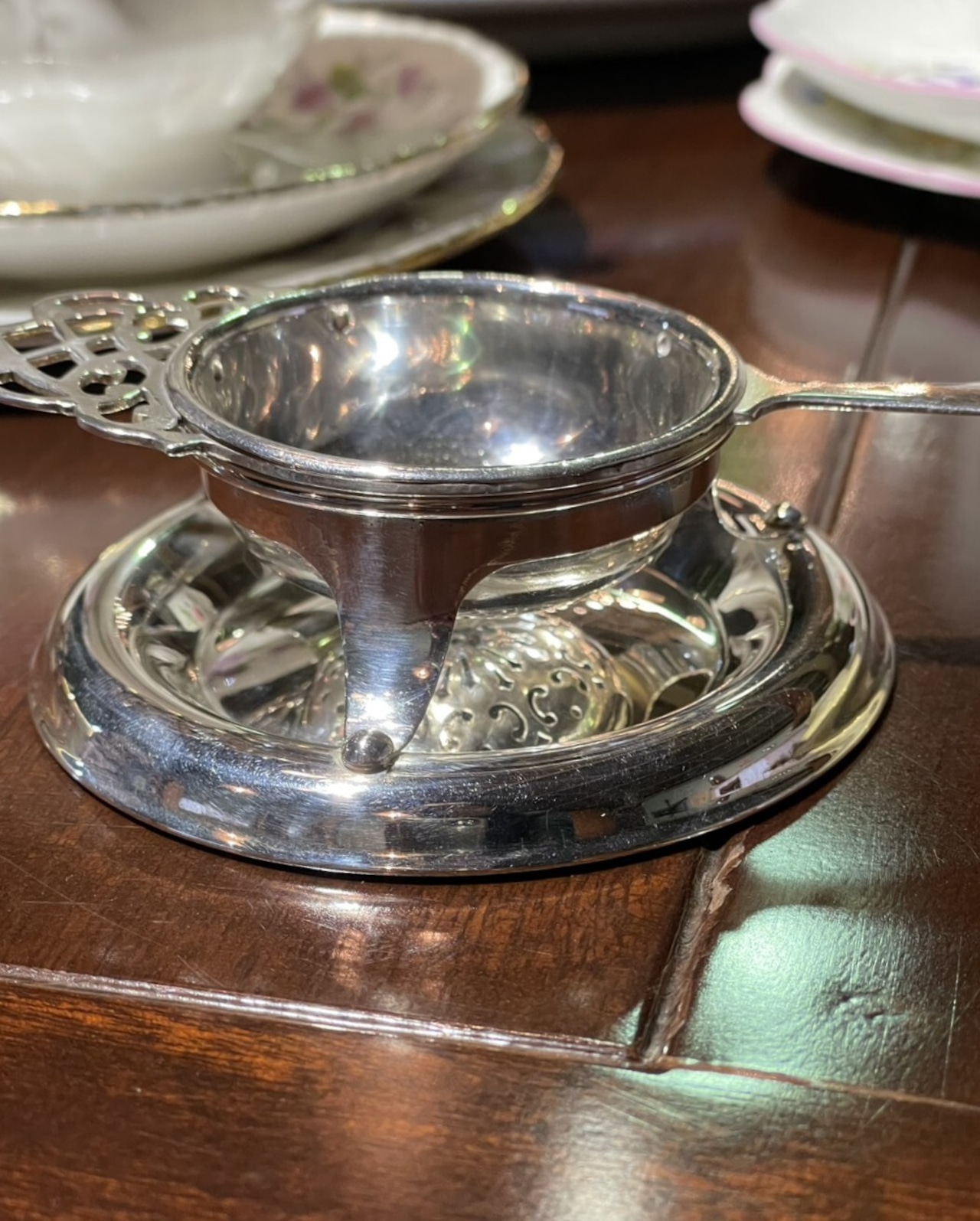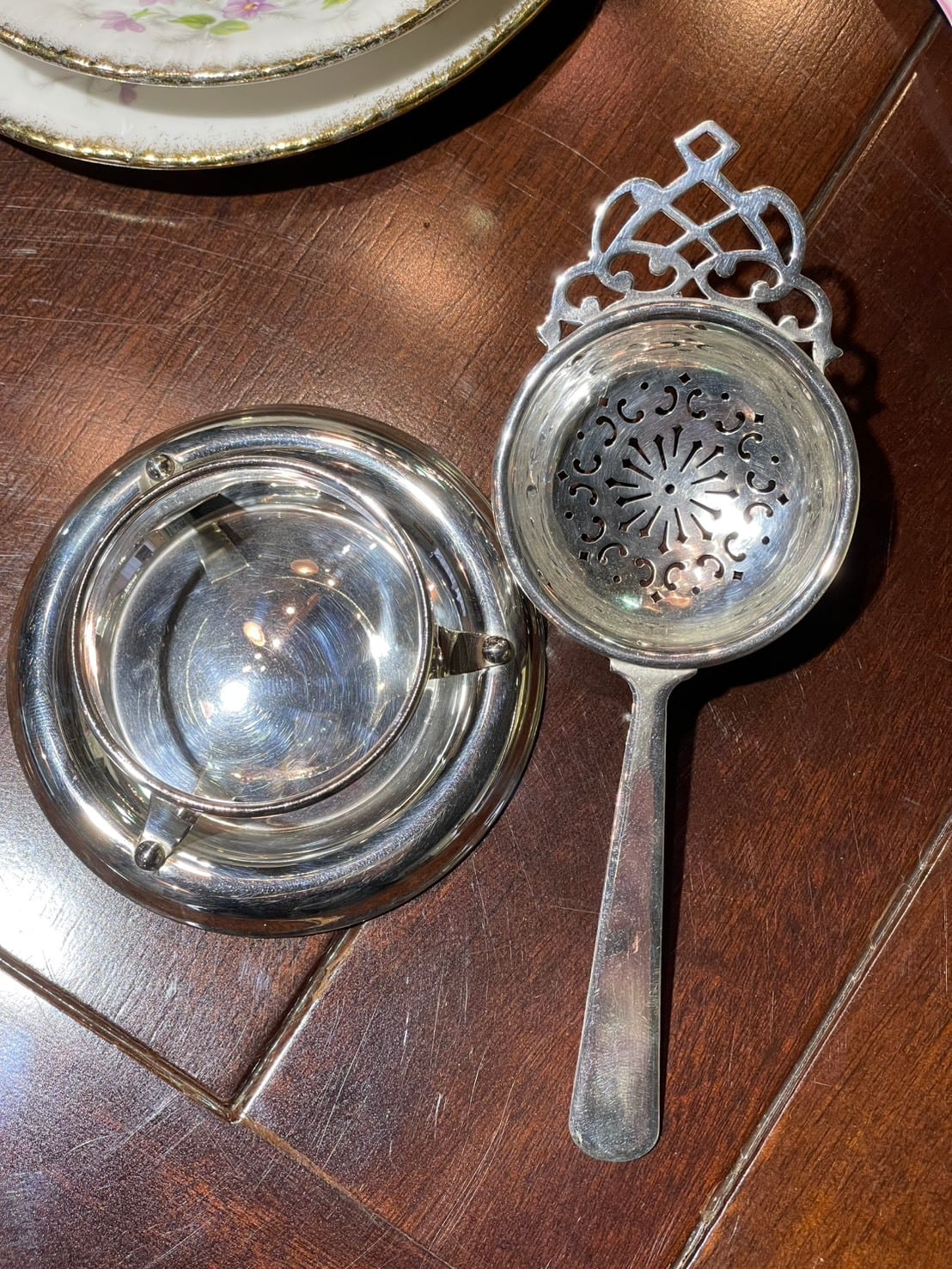 ティーストレイナー シルバープレート 受け皿付き