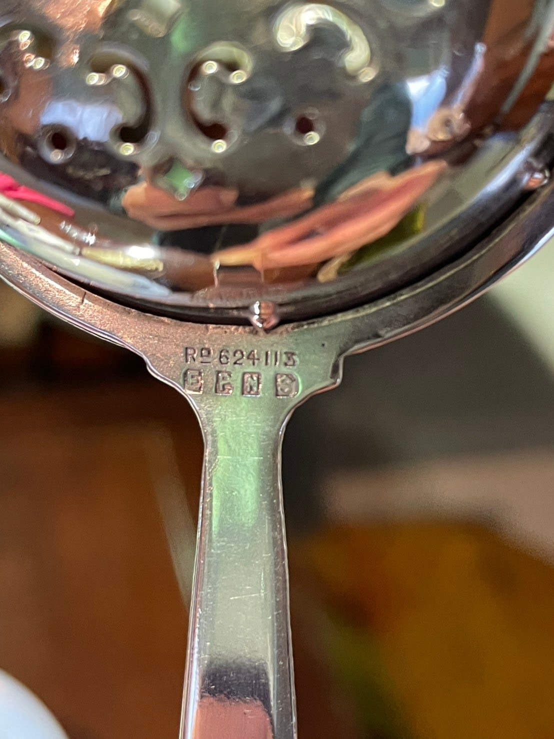 EPNS(シルバープレート)の刻印と商品登録番号が刻印されており、良質なシルバープレートであることが示されています。