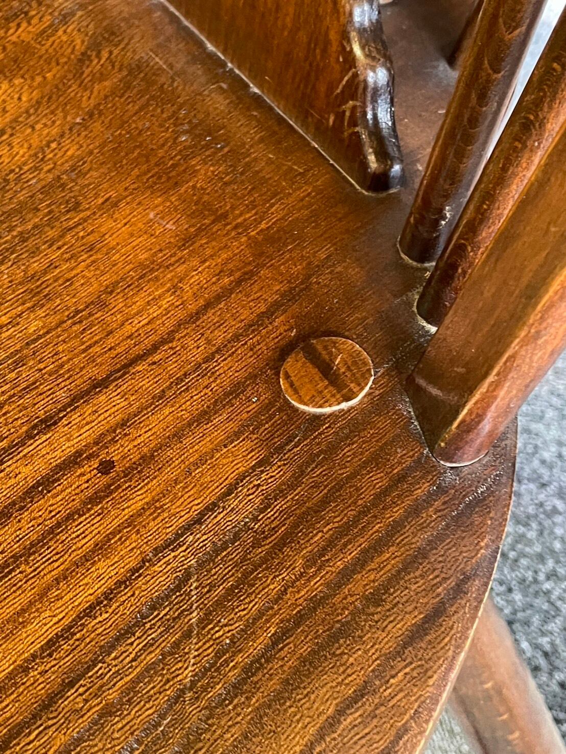 座面の継ぎ目の部分に丸く釘を隠すような施しがされており、少し出張っています。