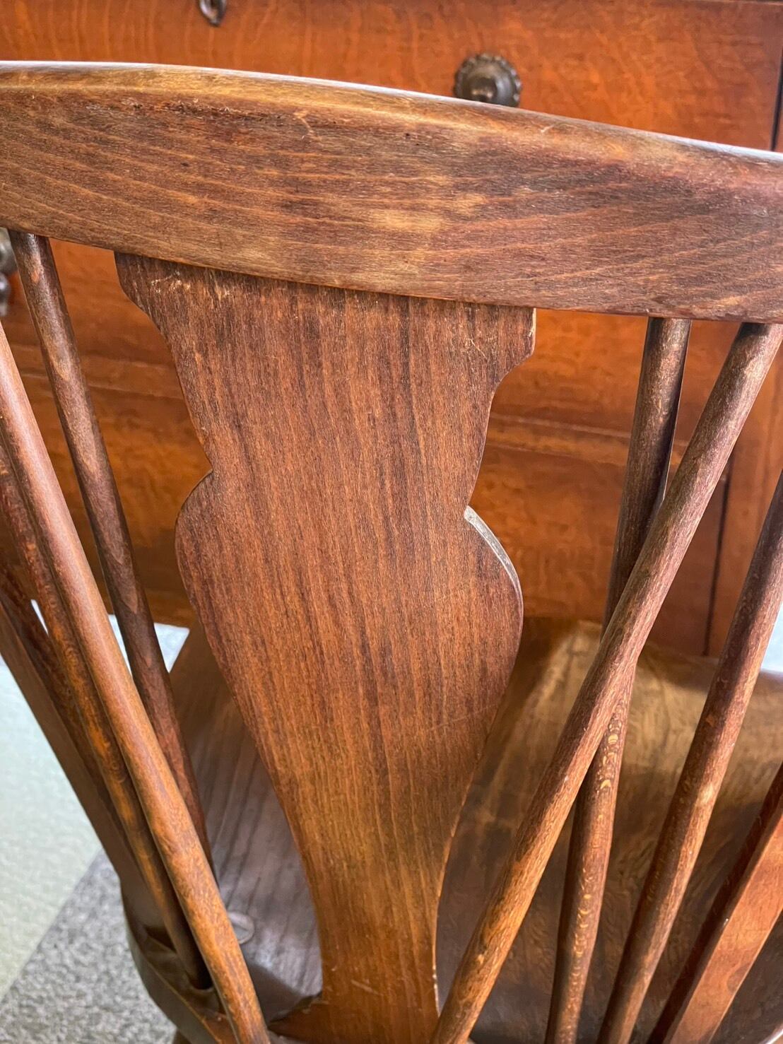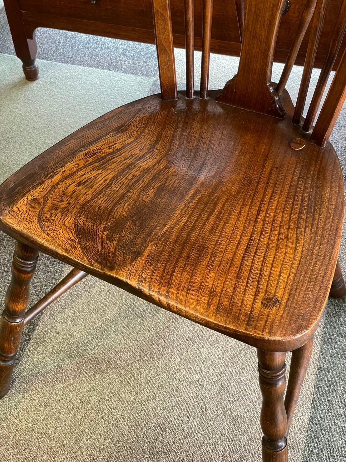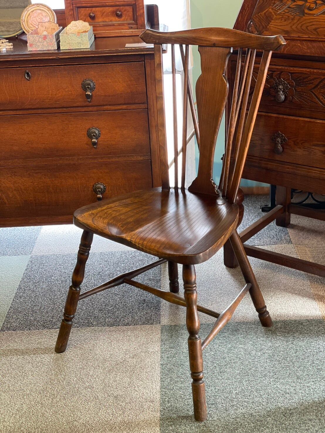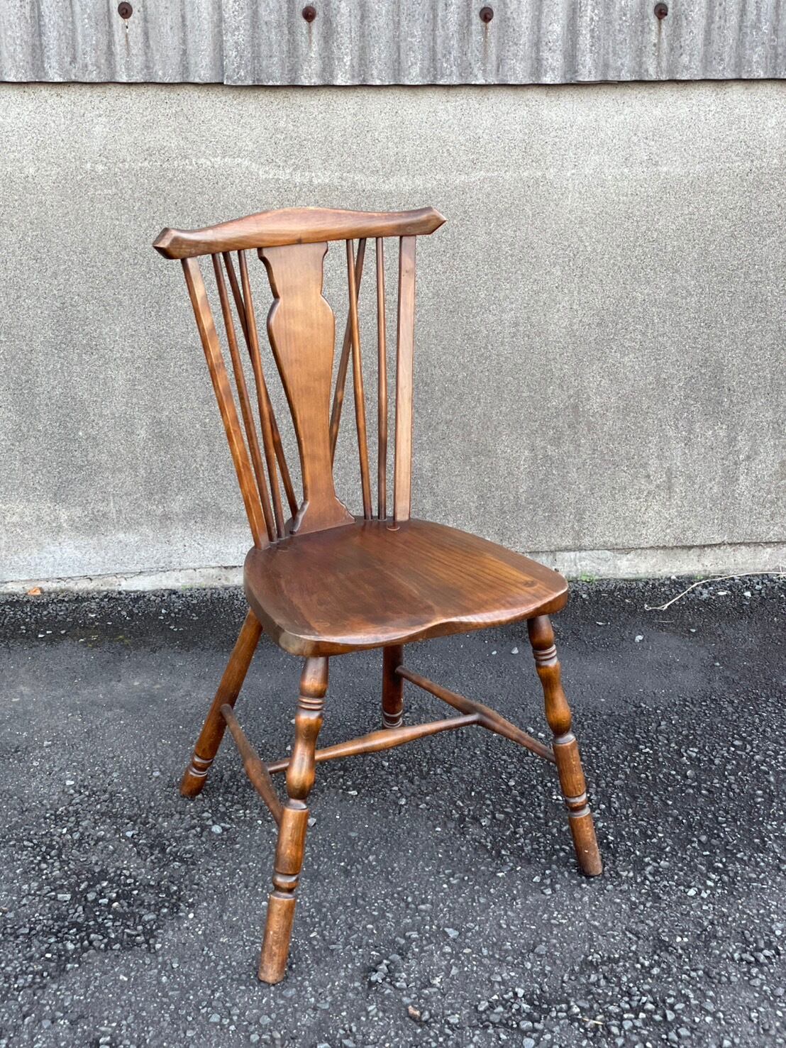 特徴としては、脚の形がハノ字、背部のデザインが様々ある、座面がお尻に合わせてくぼんでいる、など安定感があり長時間座っていても疲れず座り心地が良いという優れた造りになってなっています。イギリスのアンティーク家具の素晴らしさが詰まっている椅子です!
