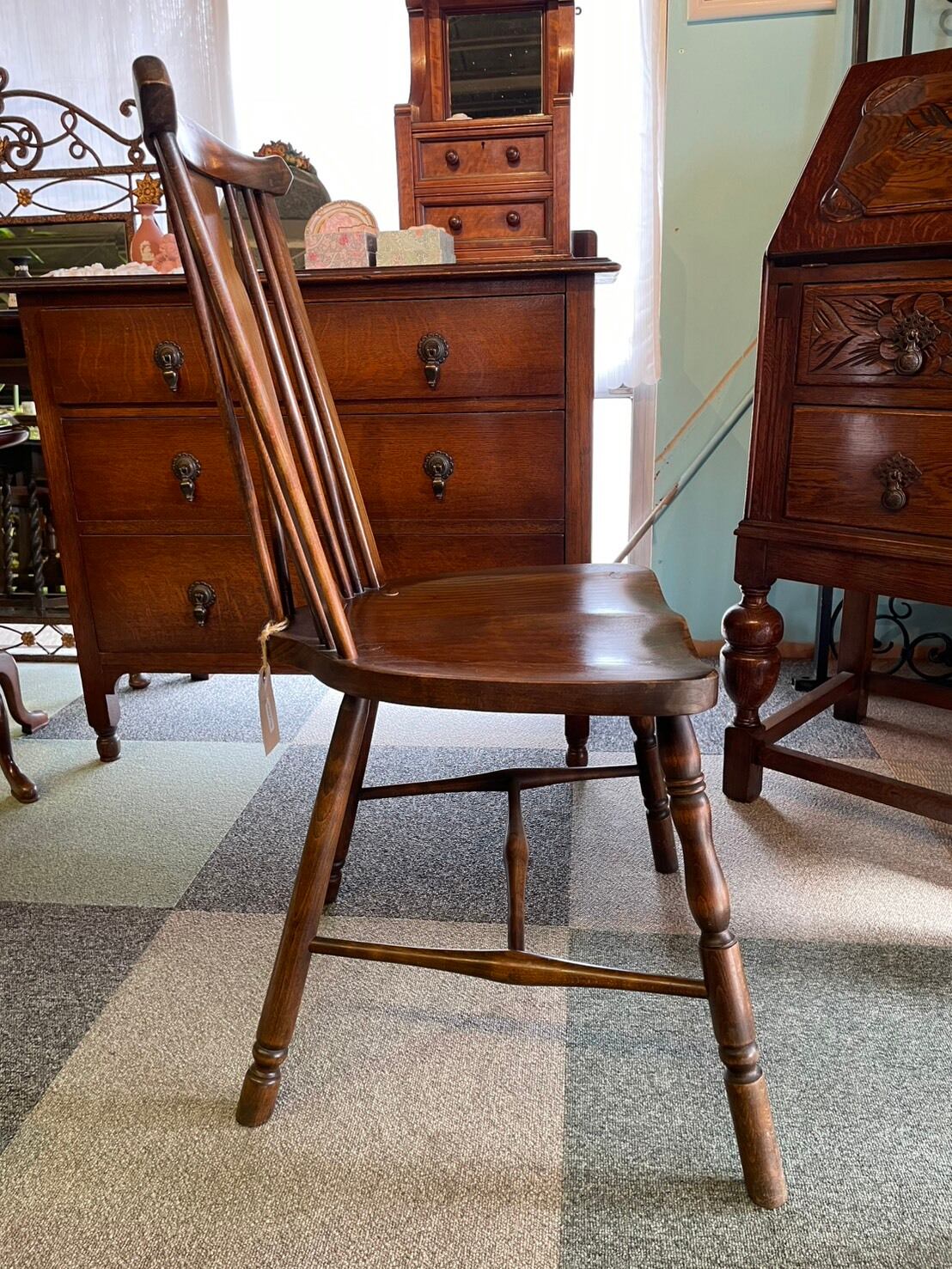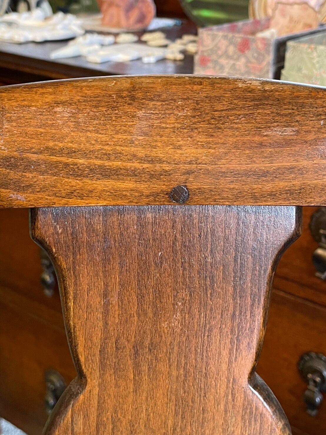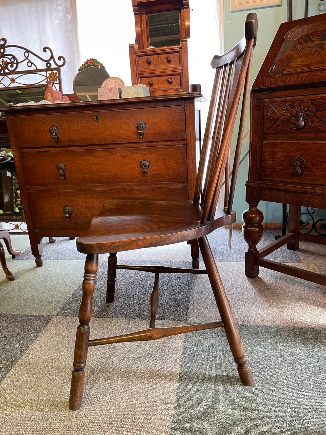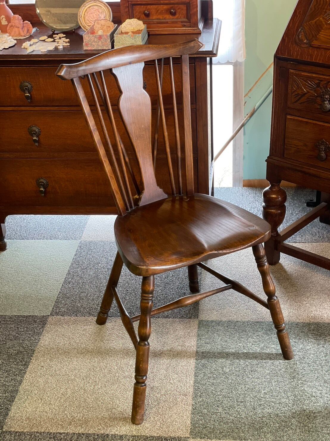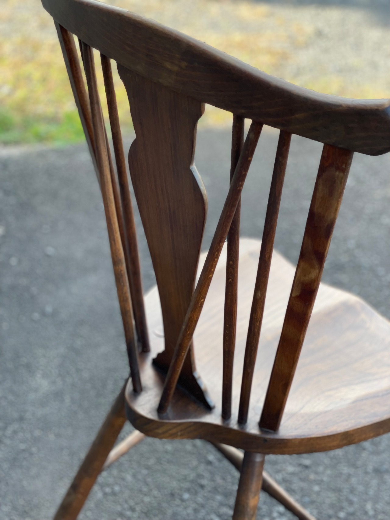 特徴としては、脚の形がハノ字、背部のデザインが様々ある、座面がお尻に合わせてくぼんでいる、など安定感があり長時間座っていても疲れず座り心地が良いという優れた造りになってなっています。イギリスのアンティーク家具の素晴らしさが詰まっている椅子です!