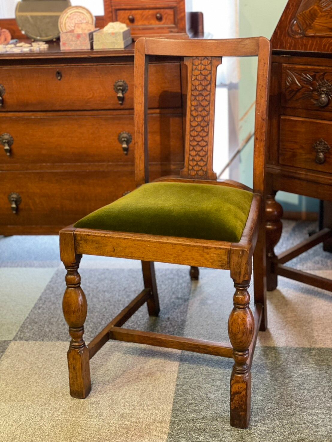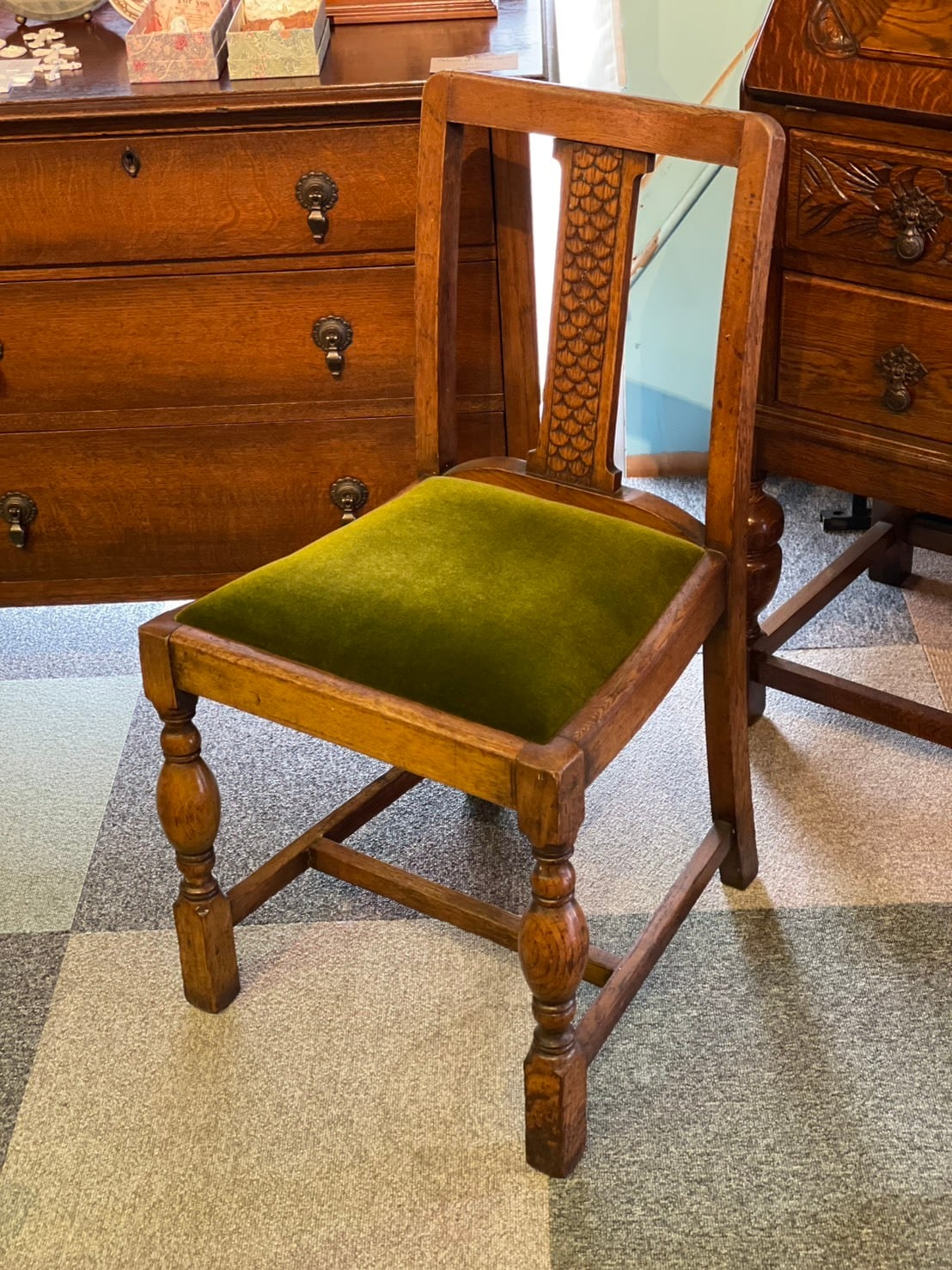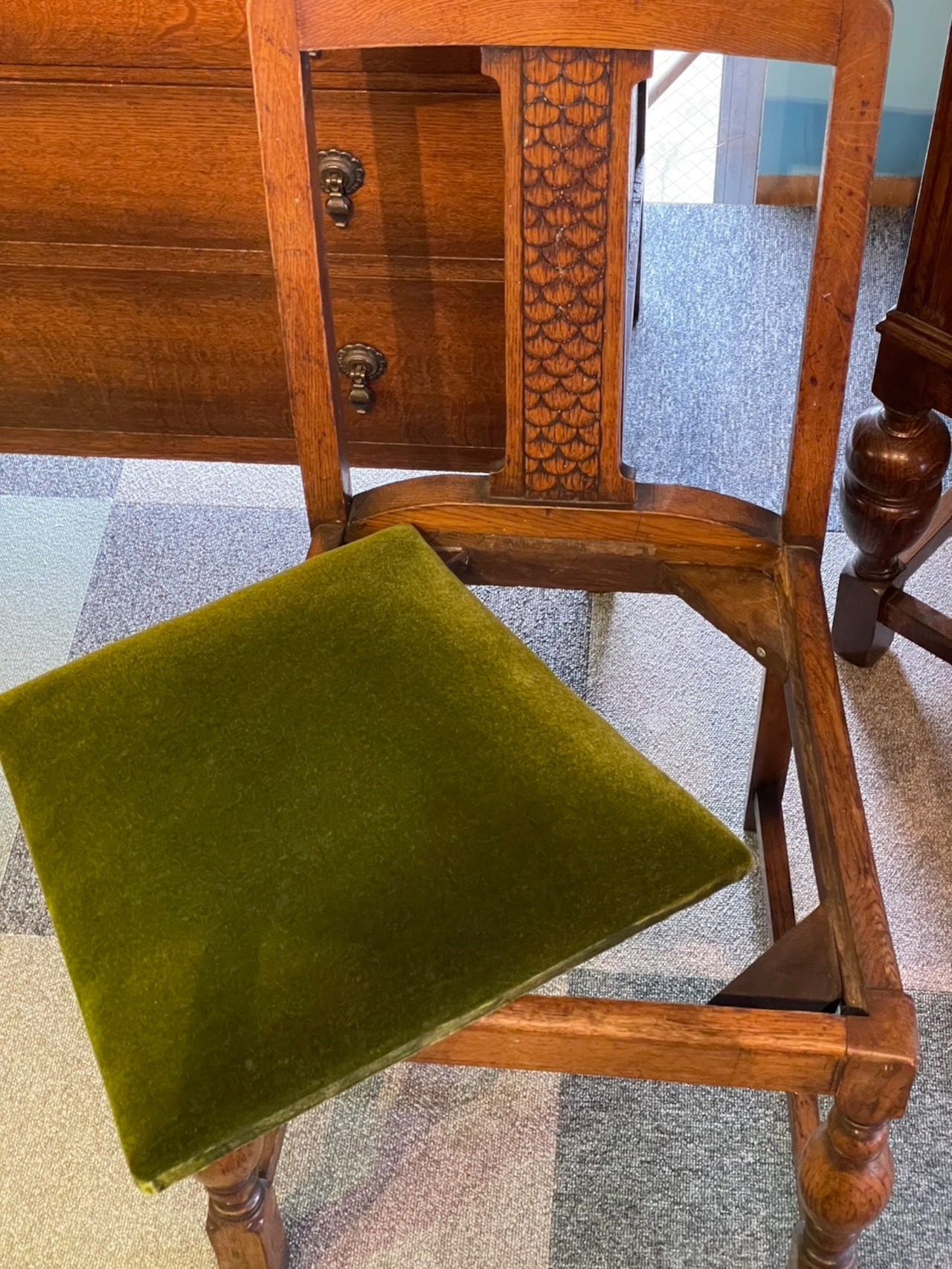 座面はベロアタイプのグリーンに張替え済です。