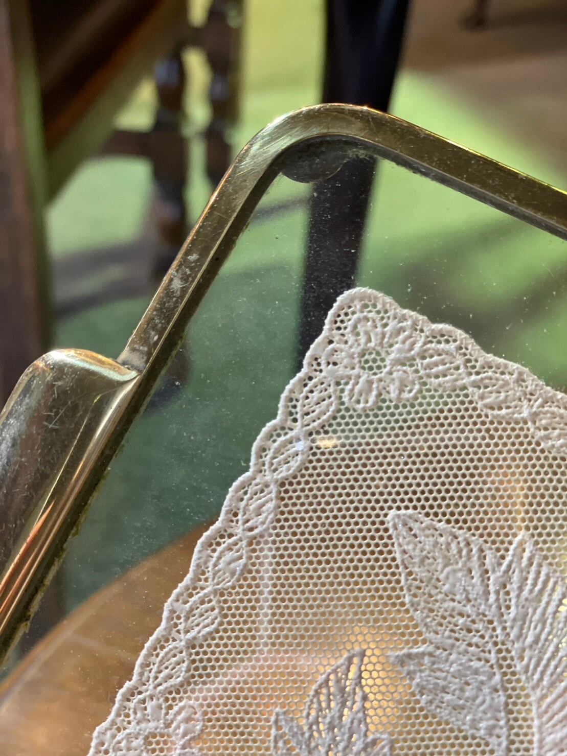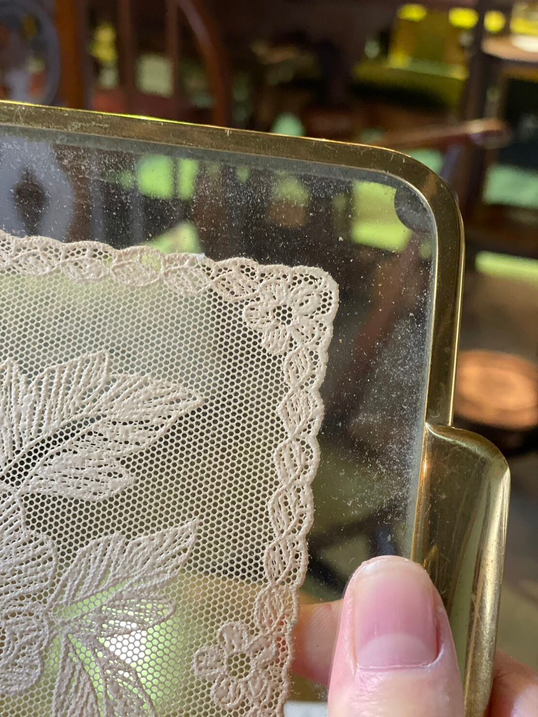 レースと刺繍がガラスで挟んでいる仕組みで、間に汚れが見られます。