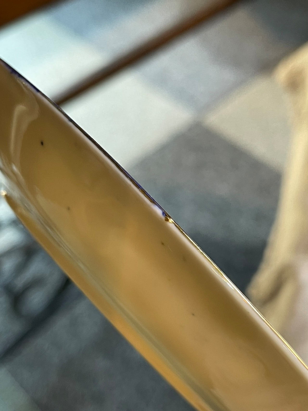 こちらは、トキオという伊万里写しのオリエンタルなデザインで1900年初頭の頃のとても古いものと思います。ブルーのインク滲みいわゆるフローブルーが見られアンティークらしい雰囲気がとても素敵です。