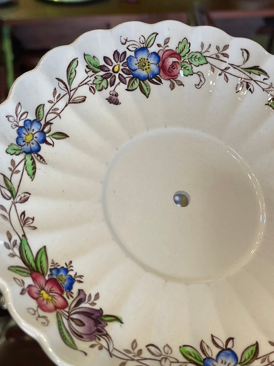 波打つようなリム部分に野花が描かれ、陶器が若干アイボリー色で温かみのある可愛らしい雰囲気です。