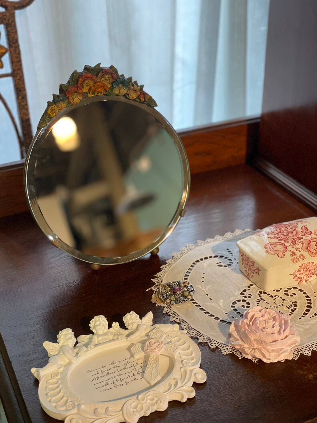 古いミラーのくすみやシミがひどかったため、新しいミラーを新調しましたので毎日のお化粧など実用的にお使いいただけます。