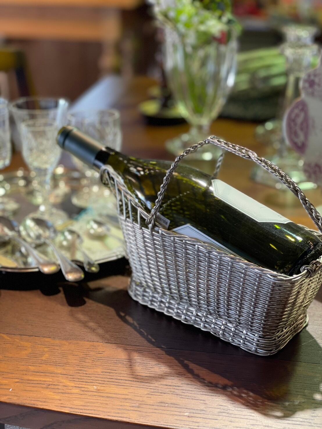 普通のバスケットタイプやワイヤータイプは見かけますが、シルバープレートワイヤーは珍しいですね。